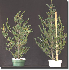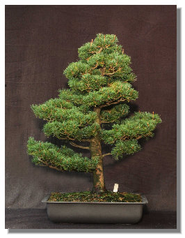Zuisho is a cultivar of Japanese five needle pine which originated as an unusual seedling about 1935. It was noticed in 1947 by Mr. Saichi Suzuki. In a relatively short time, it has become a much desired subject for bonsai. It has wonderfully short green needles, is very hardy, buds back nicely, and can be propagated by cuttings and air layers to preserve its genetic uniqueness. Zuisho is very flexible and is agreeable to all bonsai styles. Unfortunately, Zuisho is rare in the US. I have been propagating and growing Zuisho since 1986 with good success. The take rate with cuttings is low, often less than 10%. Airlayers are labor intensive but have a success rate of better than 75% most years. Clones of both types grow vigourously once the roots are established (about four years for cuttings, much sooner for airlayers), even in pots. Approach grafts are easy to do so a branch or two can be put at critical locations on larger plants. Spring application of a micronutrient supplement is highly recommended, probably necessary with typical soilless mixes used in North America.